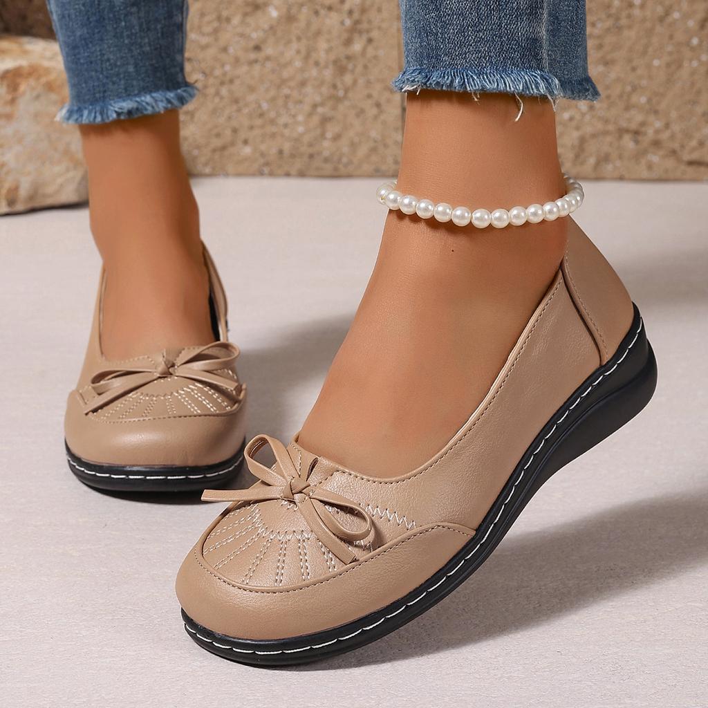 Fashion Comfort Soft Sole Pu Leather Flats Women Bowknot Decor Non Slip Platform Loafers Woman 2025 Slip On Casual Walking Shoes Size 42