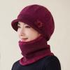Knitted Wool Hat Scarf Integrated Women's Winter Velvet Thickened Warm In The Elderly Cycling Cold Hat