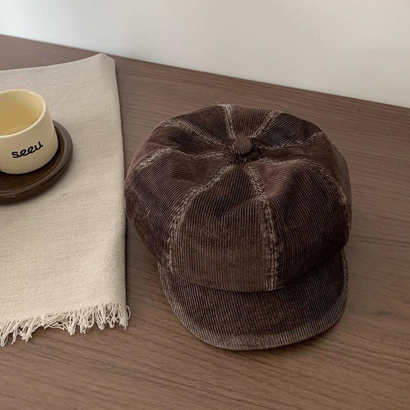 Retro Kord Achteckige Mütze für Damen Koreanischer Stil Trendig Literarische Alte Mütze Herbst und Winter Neu Japanischer Stil Malermütze