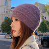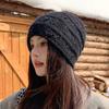 Kaninchenfell Wollmütze Damen Herbst und Winter Neu Locker Warm Ohrenschutz Pullovermütze Strickmütze