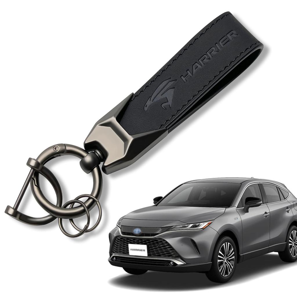 MiJuduo Echte Leder Auto Schlüsselanhänger für Toyota Harrier Serie 80, Serie 60 und Serie 30, mit einem geprägten Karabinerriemen, Rostbeständig und einem bequemen, Anti-Verlust Design. Einfaches und stilvolles Design, Schwarz, Unisex.