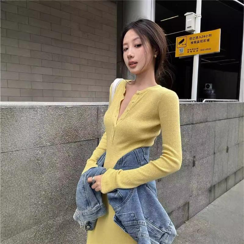 Street button knitted dress women's autumn new retro slim and thin long-sleeved hip-wrapped dress