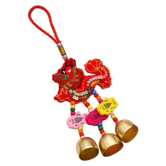 Frühlingsfest-Windspiele, Beutel, Auto-Anhänger, lebendige Farben, Stickereimuster, Metallglocke, Windspiele, Hängedekoration