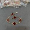 Hochwertiger roter Chalcedon Laser vierblättriges Kleeblatt fünfblütiges Armband 18K Roségold leichter Luxusschmuck Geschenk für Freundin