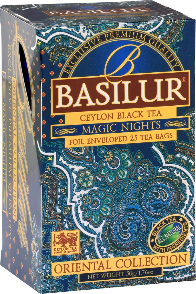 Basilikumtee [Schwarzer Teebeutel] Magische Nacht (25 Teebeutel) Aromatisierter Ceylon Schwarztee, Früchtetee, Heimcafé, Hergestellt in Sri Lanka [70416]