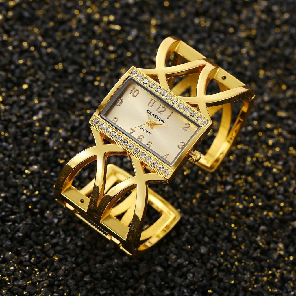 CANSNOW Rechteckige Damen-Armbanduhr Gold Silber Armreif Uhren für Damen Strass Stahlarmband Quarz Modeuhr für Damen