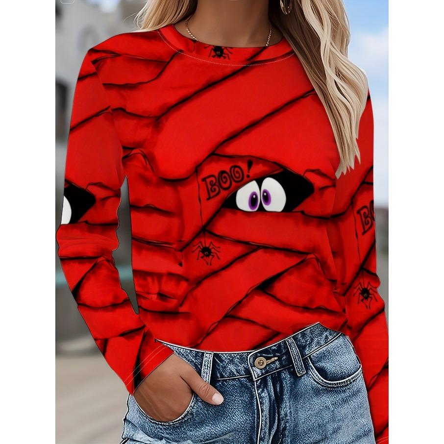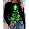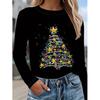 Damen Fashon Polyester Bequeme T-Shirts Sport Weihnachten 3D Druck Locker Rundhals Langarm T-Shirt Top