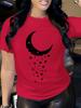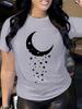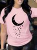 Sommer Damen T-Shirt mit Mond und Sternen Print vorne, Kurzarm, Bequemer und Atmungsaktiver Stoff, T-Shirt Damen Y2K Top