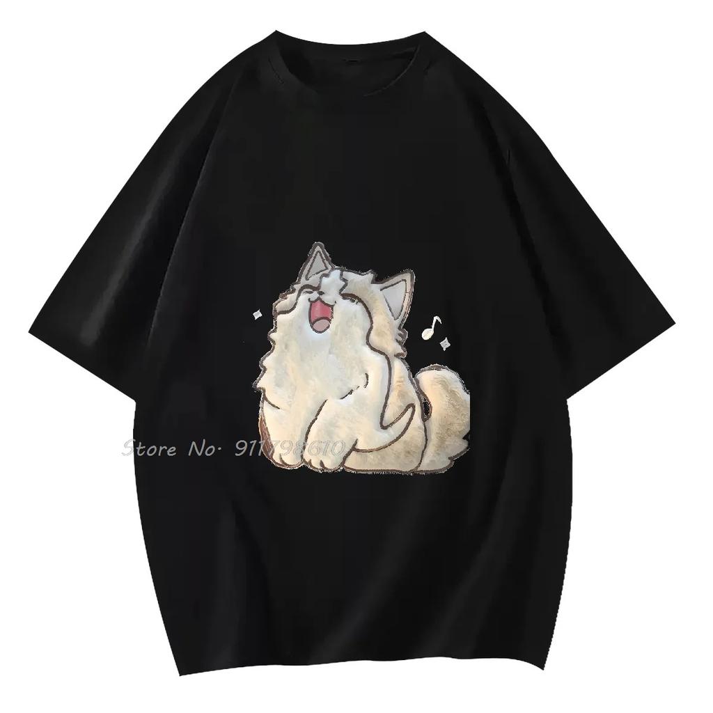Mode Lustiges Cartoon Katze Druck Baumwoll-T-Shirt Sommer Harajuku Lässig Übergroßes T-Shirt O-Ausschnitt Herrenbekleidung Unisex Oberteile T-Shirts