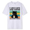 Ich mag Katzen und Kaffee Lustiger Aufdruck T-Shirt Männer Frauen Frühling Sommer Lässig Locker Baumwollkleidung Hip Hop Neutrales Oberteil Kleidung