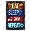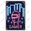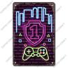 Neon-Videospiel-Poster, Metallplatte, Gamer, Play Win Game Zone, Metallblechschilder, Retro-Wanddekoration, Spielzimmer, Bar, Kneipe, Männerhöhle