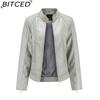 BITCED Spring/Autumn Women's Leather Jacket Women's Elegant Plus Size Stand Collar Leather Jacket
