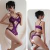 Fun underwear purple suspender one-piece set lace hollow splicing sexy transparent steel ring gathering