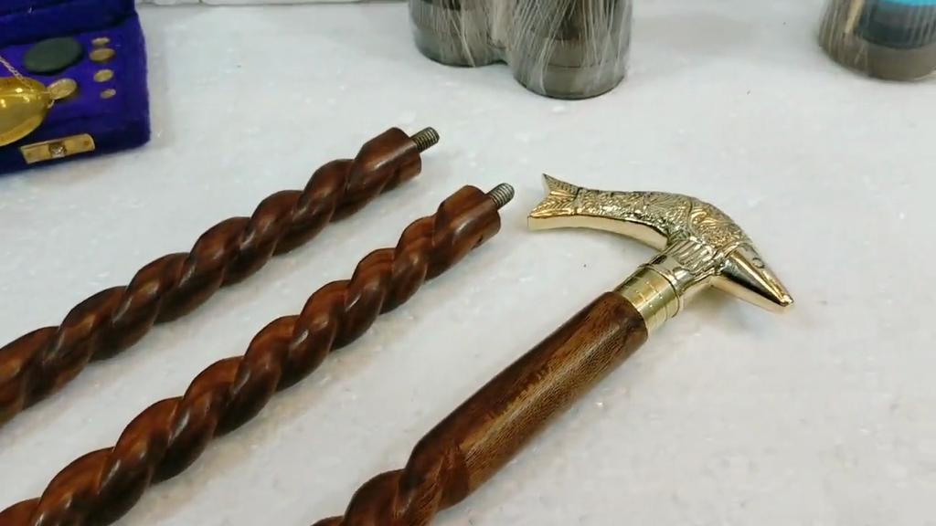 Engraved Walking Cane: Brass Fish Handle, Foldable Personalized Stick