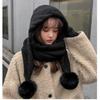 Plüschwollmütze für Damen, vielseitig für Herbst und Winter, inklusive Schal und einteiliger Mütze, niedlicher Pelzbommel-Ohrenschutz, dick und warm gestrickt