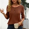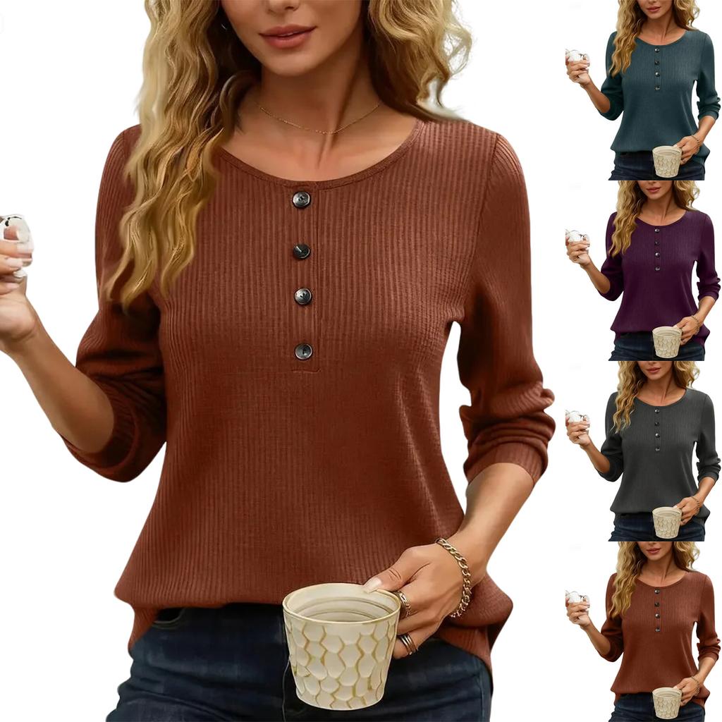 Damen Modischer Rundhals Langarm Knopf Lässiger Lockerer Pullover Top