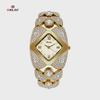 Einzigartiges Design Damenmarkenuhren Mode Luxus Diamantbesetztes Armband Quarzwerk Damenuhr Legierungsuhr