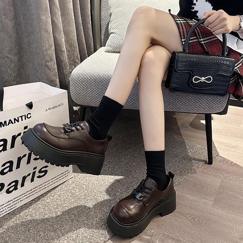 Britischer Stil Schnürschuhe kleine Lederschuhe Damen 2025 Frühling und Herbst neue ins trendige Internet-Berühmtheit Mode vielseitige Plateau-Loafer sin