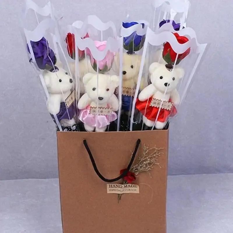 1 Stück Künstliche Blume Duftende Blumenseife Rosen Mit Niedlichem Bär Weihnachtsgeschenk Bunte Seifenrose Heimdekoration