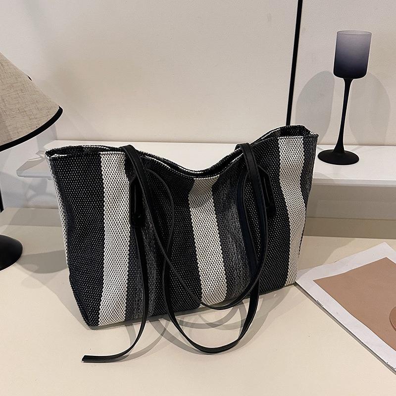 New simple vertical stripe large capacity women's shoulder bag women's casual tote bag fashion handbag