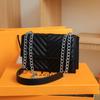 Einfarbig neue trendige modische und schöne kleine quadratische Tasche strukturierte gestreifte Damentasche Retro atmosphärische Umhängetasche