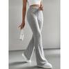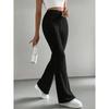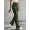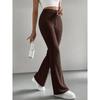 Schlank geschnittene gestrickte einfarbige gerippte Mikro-Schlaghosen modische Freizeithose für Damen Herbst Winter saisonale lange Hose