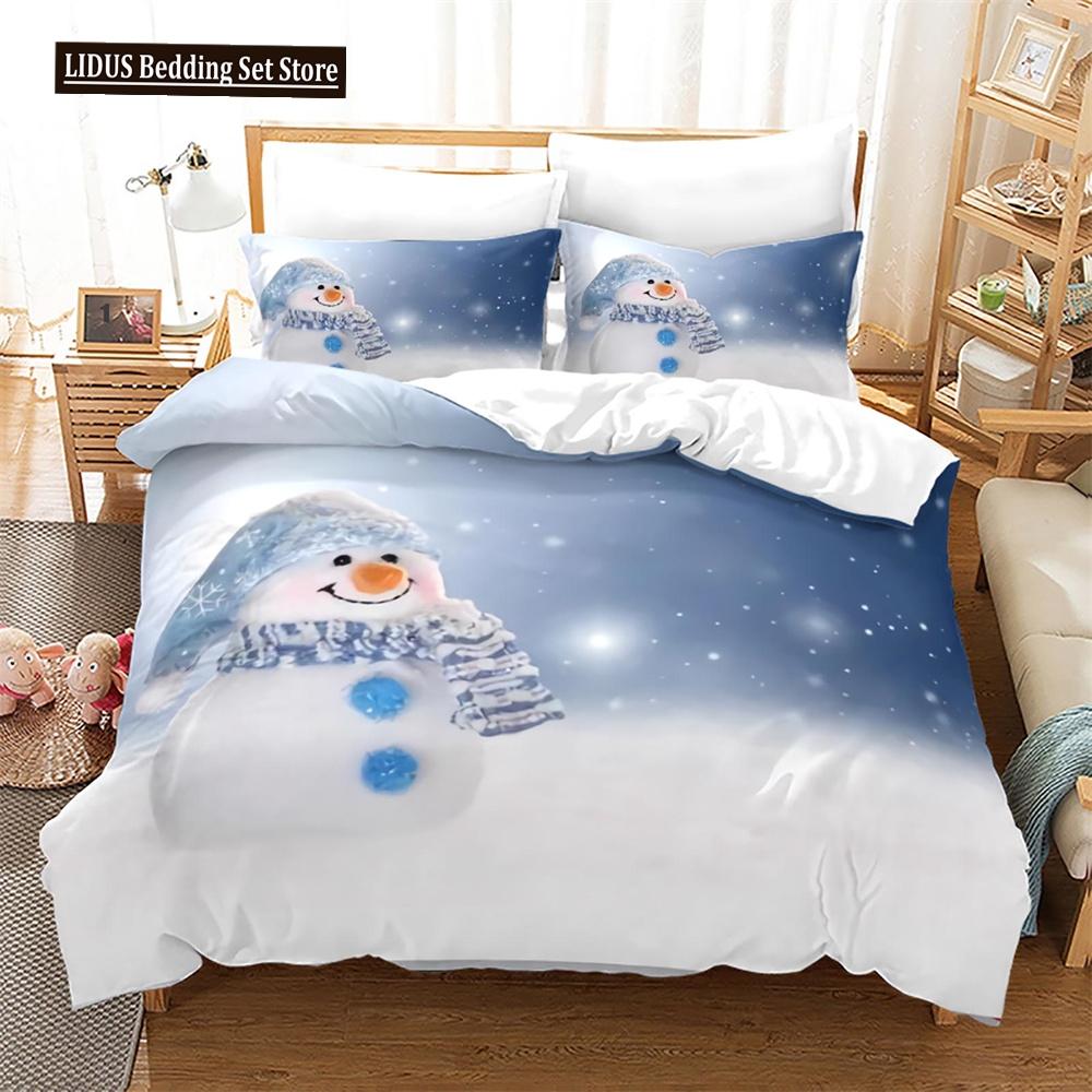 Weihnachts-Bettbezug-Set King Queen Full Size Winterthema Schneemann-Muster Polyester Bettdeckenbezug für Kind Festivalgeschenk
