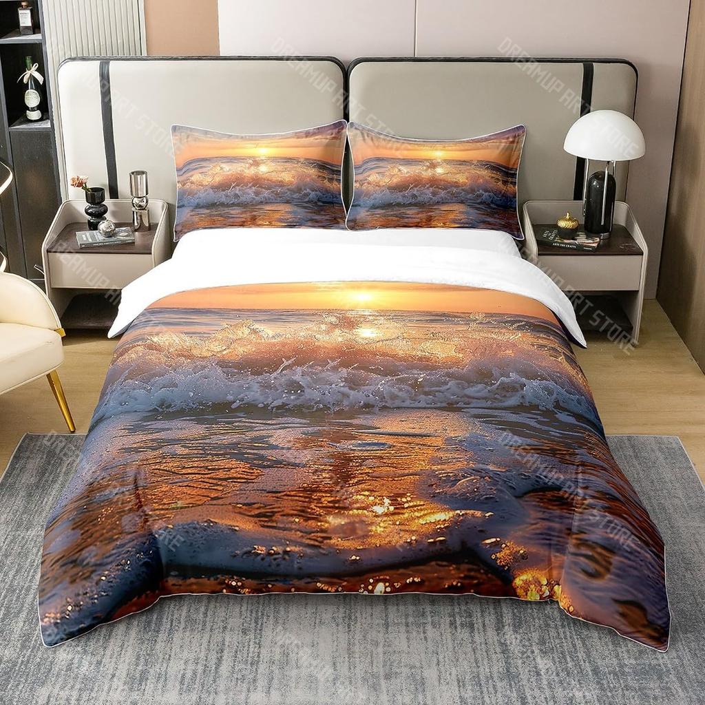 Bettwäsche-Set mit Strandthema King Queen Größe Ozeanwelle Sonnenuntergang Bettbezug Küsten-Nautik-Bettdeckenbezug Meereslandschaft Bettdeckenbezug