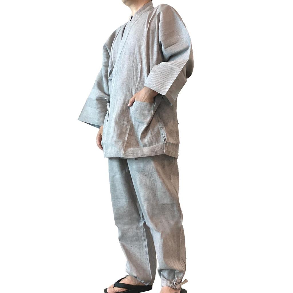 Kyoto Kimono Yuzen Men's Samue Kimono, Cotton and Linen, Year-Round Wear, Elastic Top and Bottom Set (Gray, Size L)