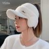 Warme Wintermützen Ohrenschutz Zopfmütze Schirm Mützen Freizeit Baseballkappen Frauen