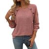 2024 Women's Crew Neck Ribbed Long Sleeve Button T-shirt - Solid Color