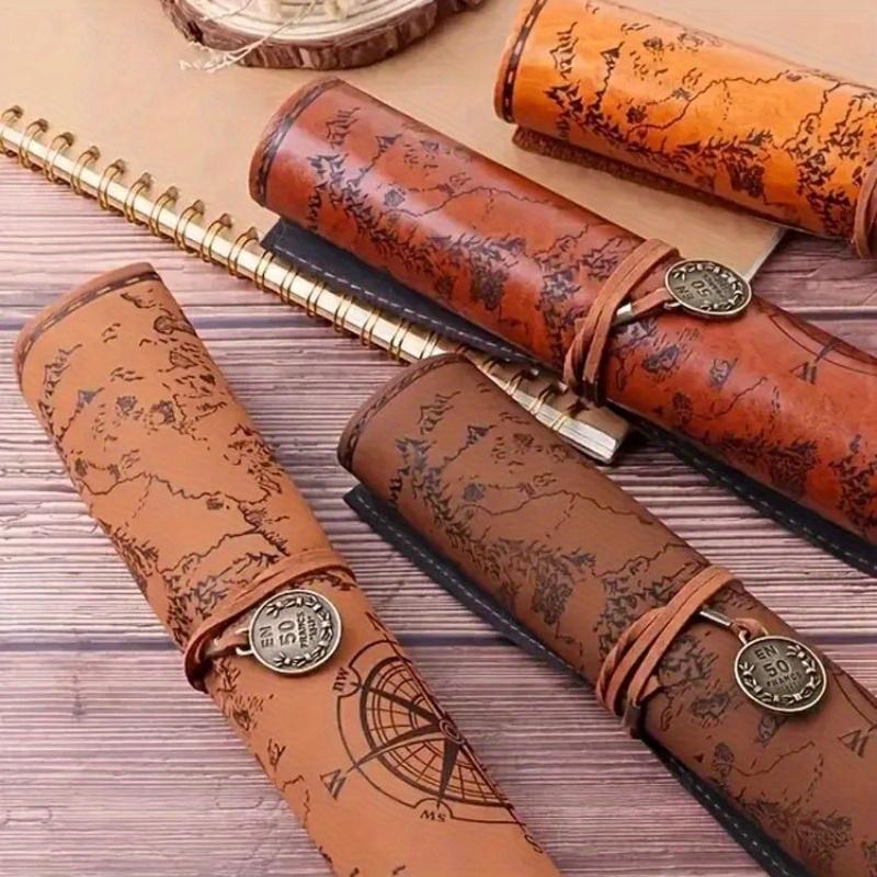 Kreatives Schatzkarten-Aufbewahrungs-Stifteetui, Schlichtes Retro-Stiftröllchen aus Kunstleder mit großer Kapazität, Bürobedarf für Zuhause & Schule.