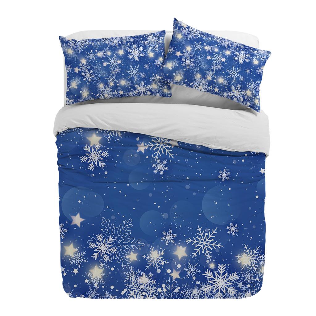 Weihnachts-Schneeflocken Blau 3-teiliges Bettwäsche-Set für Doppelbett Heimtextilien Bettbezug Steppdeckenbezug Kissenbezug