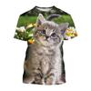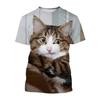 Neues 3D Tier Katze Muster Bedrucktes Jungen Freizeit Rundhals Harajuku Stil T-Shirt Sommer Streetstyle Leichtes Oberteil