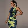 Damen Herbst Sommer Ärmellos Bedruckt Figurbetont Schlank Paket Hüfte Kleid Weibliche Kleidung Streetwear
