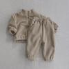 Dieses kuschelige zweiteilige Set ist perfekt für die Herbstabenteuer Ihres kleinen Lieblings.. Es verfügt über einen charmanten koreanischen Stil mit einem doppelseitigen Fleecefutter, das Wärme und Komfort gewährleistet.. Der Trainingsanzug besteht aus einem langärmligen Oberteil und einer passenden Hose, beide aus weichem, strapazierfähigem Cord gefertigt.. Ideal für Babys und Kleinkinder, dieses Set bietet sowohl Stil als auch Praktikabilität für kühleres Wetter.
