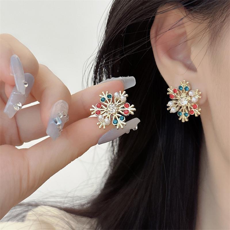 Winter Schneeflocken Ohrstecker für Damen Bunte Acrylkristalle Koreanische Mode Kleine Ohrringe Weihnachtsfeier Schmuck