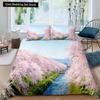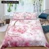 Rosa Kirschblüten King Queen Bettwäscheset Frühlingsflora Bettbezug Japanische Blumen Steppdeckenbezug Weicher Polyester Bettdeckenbezug