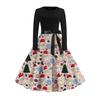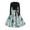 Damen Modisches Und Elegantes Herbst- Und Winter Langarm Rundhals Weihnachtsdruck Kleid