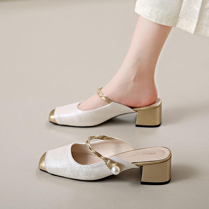 Neuer nationaler Stil Französisches Wort und ein halbes Drag 2025 Sommer neue Feenstil Tasche Kopf Mode dicker Absatz Mary Jane coole Hausschuhe