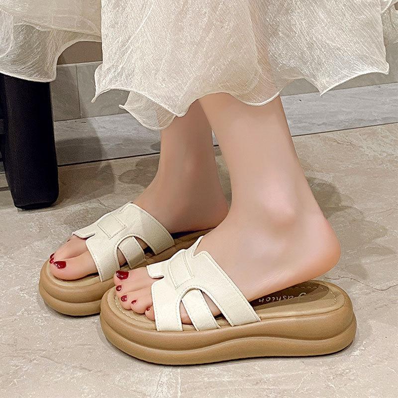 Cool Pantoletten mit dicker Sohle Damen Sommerbekleidung 2025 neue Modelle mit Röcken Feenwind Gefühl auf Scheiße treten Strand Ein-Wort-Sandalen