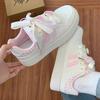 Milchblaue Plateau-Brot-Schuhe Damen-Board-Schuhe 2025 neu Hong Kong-Stil vielseitige Lederoberfläche Studenten-Freizeit-Sport weiße Schuhe