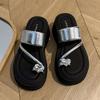 Set Zehen-Cool-Slipper mit dickem Boden für Damen-Sommerbekleidung 2025 neue Modelle mit Röcken, High-End Super-Feuer Silberstrand Ein-Wort-Schlepper
