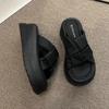 Schwarze Plateauslipper mit Absatz für Damen Sommer 2025 neu Französische High-End-Mode Strandsandalen