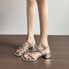 Schön mit Rock Ein-Wort-Pantoffeln Damen Sommerbekleidung High-End 2025 neu dickabsatzige hochhackige Schuhe Temperament coole Pantoffeln