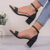 2025 neue Überseehandel offene europäische und amerikanische Stil Übergröße runde Zehenpartie hohl Ein-Wort-Schnalle Damen Sandalen mit hohen Absätzen