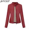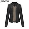 BITCED Spring/Autumn Casual Leather Jacket for Women Fashion Streetwear Stand Collar Biker Jacket