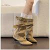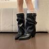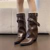 Mode Spitzschuh Slipper Damen Western Stiefeletten Prägnante Eckige Absätze Schuhe Damen Gürtelschnalle Kurze Stiefeletten