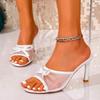 2025 Übergröße Sexy Damen Hausschuhe Schleife Offene Zehen Hohl Design Bequeme Lässige Hausschuhe Sommer Hoher Absatz Einfarbige Schuhe Damen