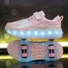 NEW Children's Roller Skating Shoes 4 Wheel LED Skating Shoes 2 in 1 Removable Pulley Skate Skating Parkour Sneaker with Wheels